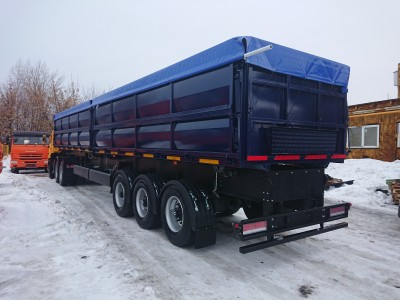Самосваьная платформа состит из 2-х самостоятельных кузовов 25+25 куб . Между кузовами установлены съемные перегородки.Основание конструкции усиленное, выполнено из конструкционной стали 09Г2С, обработано антикоррозийным материалом, согласно требованиям завода изготовителя. Пол надстройки стальной. Надстройка представляет собой стальной каркас, боковые нижние борта откидные с нижней навеской, боковые верхние борта с верхней навеской или глухие, передняя и задние части глухие.