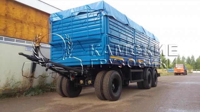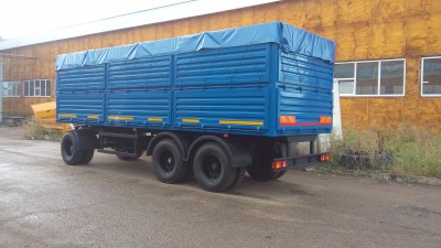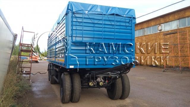 Прицеп может комплектоваться пологом с наматывающим устройством, задними распашными воротами, люком под зерномет.