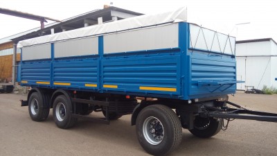 Прицеп может комплектоваться пологом с наматывающим устройством, задними распашными воротами, люком под зерномет.
