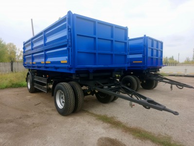 Самосвальная платформа разгрузка на две боковые стороны 50град., ручное запирание бортов, борта подпружинены, Боковые борта: верхние боковые борта с верхней навеской, нижние боковые борта с нижней навеской. Задняя часть: глухая, возможность установки распашных ворот, люка под зерномет 450мм. Гидросистема: Две опорные балки, с двумя гидроцилиндрами. Цвет платформы по выбору.