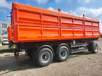 Самосвальная платформа разгрузка на две боковые стороны 50град., ручное запирание бортов, Боковые борта: верхние боковые борта глухие, нижние боковые борта с верхней навеской. Задняя часть: глухая, возможность установки распашных ворот, люка под зерномет 450мм. Гидросистема: Три опорные балки, с двумя гидроцилиндрами. Цвет платформы по выбору.