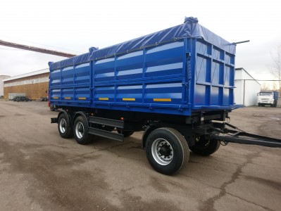 Самосвальная платформа разгрузка на две боковые стороны 50град., ручное запирание бортов, борта подпружинены, Боковые борта: верхние боковые борта с верхней навеской, нижние боковые борта с нижней навеской. Задняя часть: глухая, возможность установки распашных ворот, люка под зерномет 450мм. Гидросистема: ТРИ опорные балки, с двумя гидроцилиндрами. Цвет платформы по выбору.