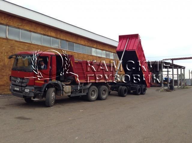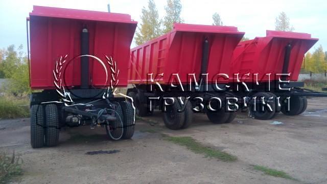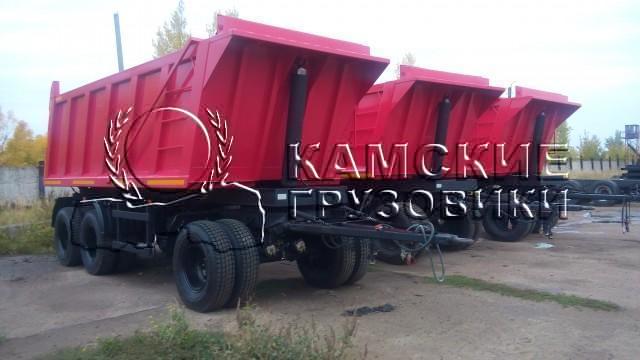 Особенности комплектации автомобиля | Прицеп Самосвал 3 трехосный 2 двухскатный самосвальный для перевозки сыпучих грузов. Прицеп-самосвал комплектация: - 3 оси ( ; 12 колес; 1 запасное колесо; - шины 10.00R20 (универсальные, камерные); КАМА - рама сварная с двумя лонжеронами - подвеска рессорно-балансирная - тормозная система – рабочая- двухпроводная, механизм барабанного типа с АБС Стояночная механическая с приводом пружинных энергоаккумуляторов. Габаритные размеры прицепа без надставных бортов (мм) 8600х2550х3100 Полная масса прицепа 28000кг Снаряженная масса прицепа 8000кг грузоподъемность 20000кг |